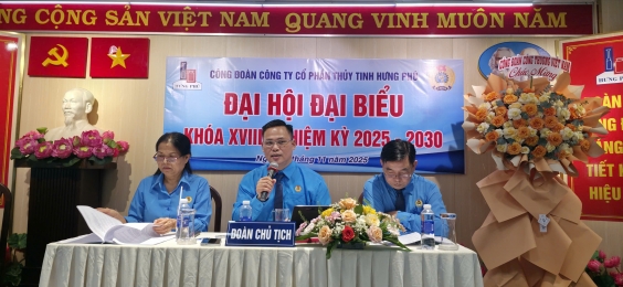 Đại hội đại biểu công đoàn Công ty cổ phần Thủy Tinh Hưng Phú nhiệm kỳ XVIII, nhiệm kỳ 2025-2030 được tổ vào 8h00 ngày 1611/2025 tại Hội trường Công ty cổ phần Thủy...