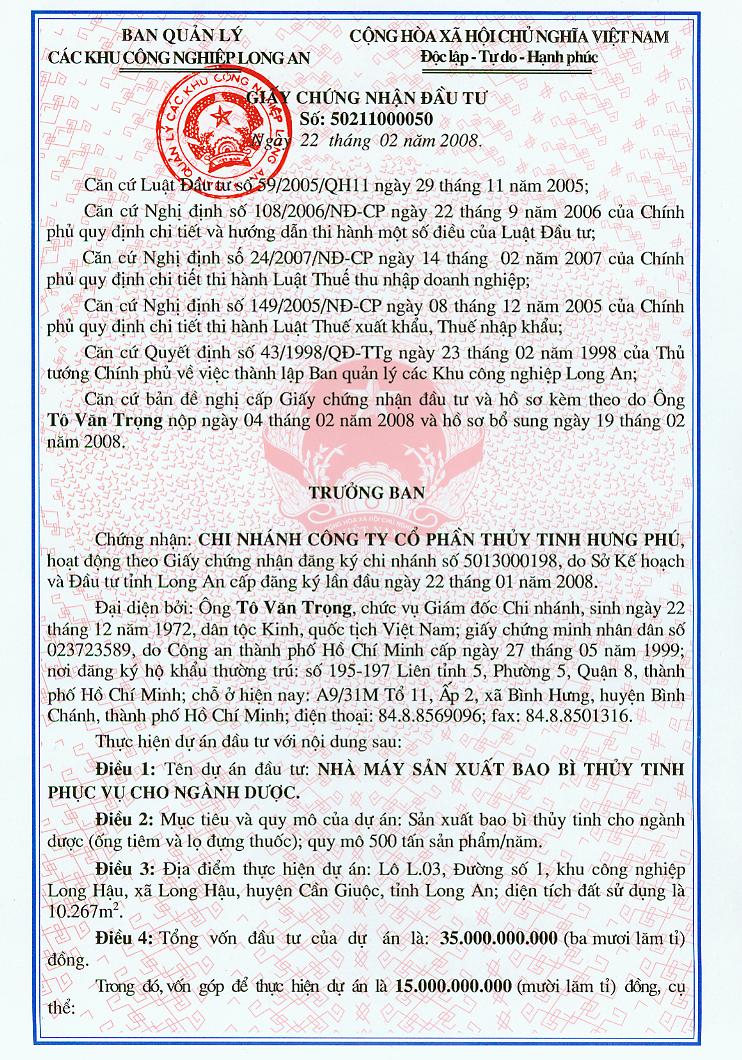 Công ty Cổ phần thủy tinh Hưng Phú vinh dự đón nhận huân chương lao động hạng nhất.Cũng trong dịp này, công ty đã tiến hành tổng kết hoạt động sản xuất kinh doanh năm 2011